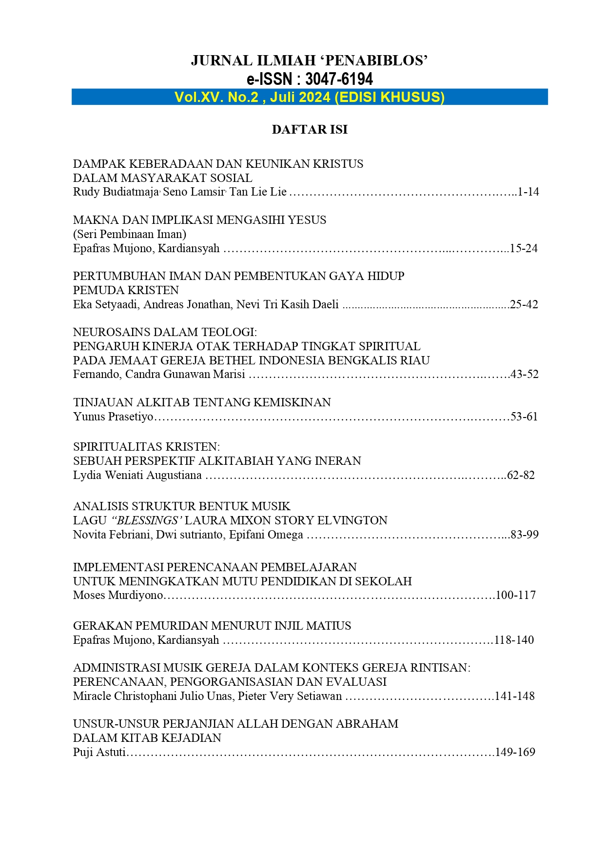 Vol. 15 No. 2 (2024): JURNAL PENABIBLOS (JPS)